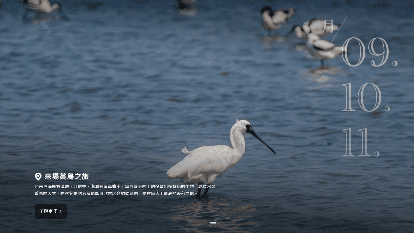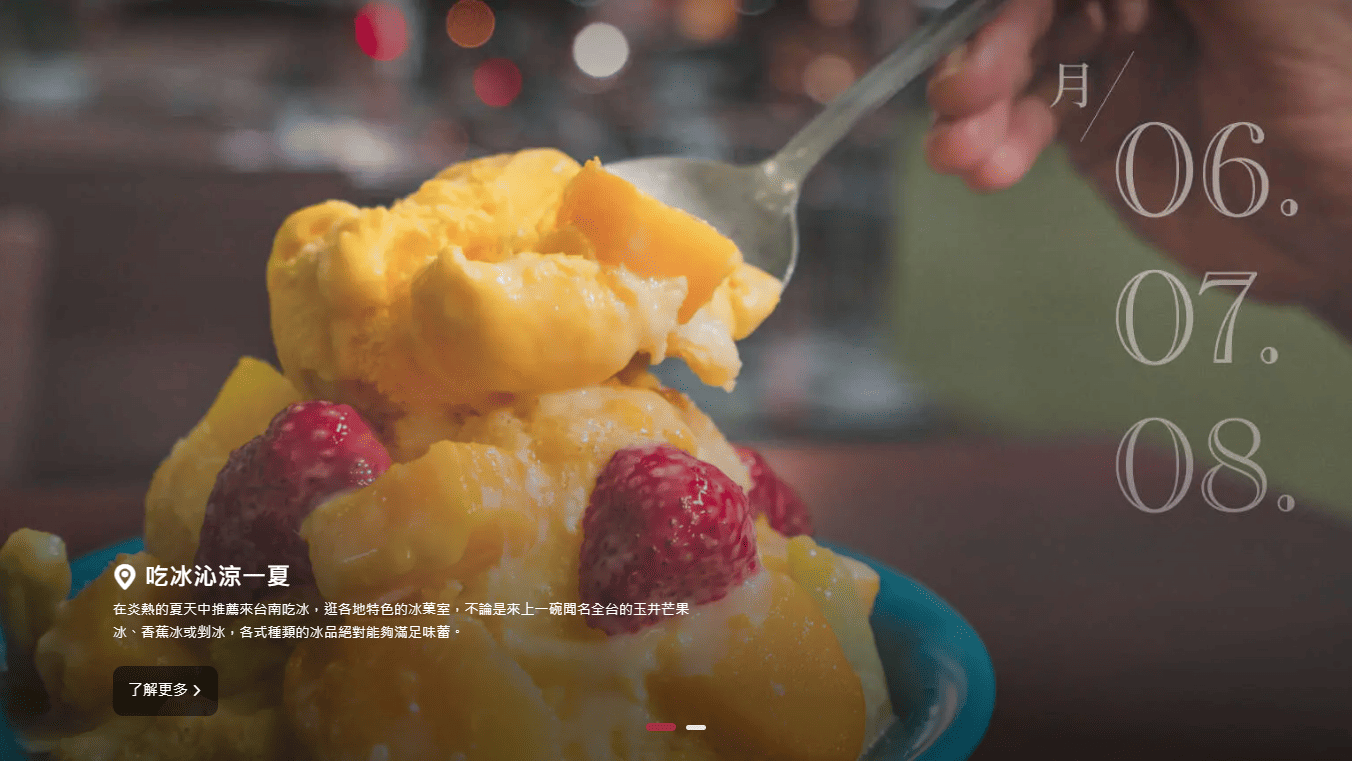 新版網站強調「簡單易用」,首頁改為精簡版面,保留最重要的選單選項,優化搜尋功能,並重新整理住宿、美食及主題景點介紹頁面。此外,網站整合沉浸式體驗功能,讓旅客能透過影像先行感受台南風景,提升旅遊規劃的便利性,讓找景點、查活動變得更直覺流暢。
