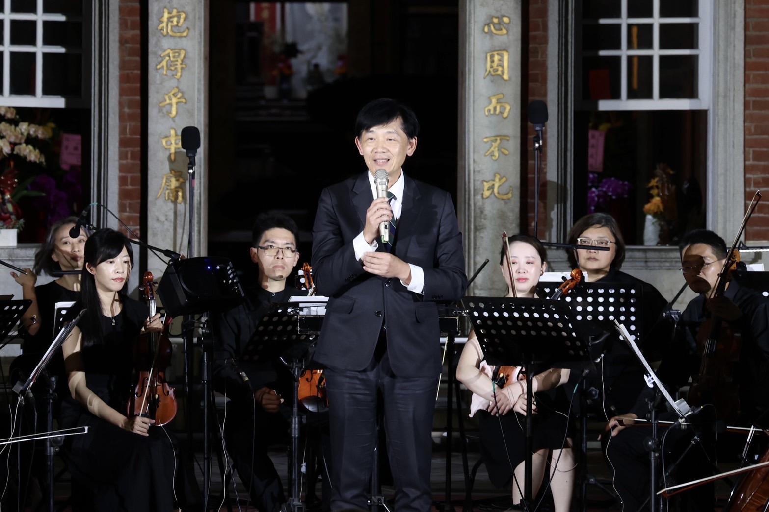 月光灑落古厝屋簷,悠揚樂聲迴盪夜空。邁入第28年的「黃家古厝中秋音樂會」今(4)日晚間於市定古蹟後壁黃家古厝盛大登場,再度吸引大批民眾共襄盛舉。副市長葉澤山代表市長黃偉哲出席致詞時表示,黃家古厝中秋音樂會不只是後壁的年度活動,更是屬於整個台南、甚至全台灣的重要音樂盛會。