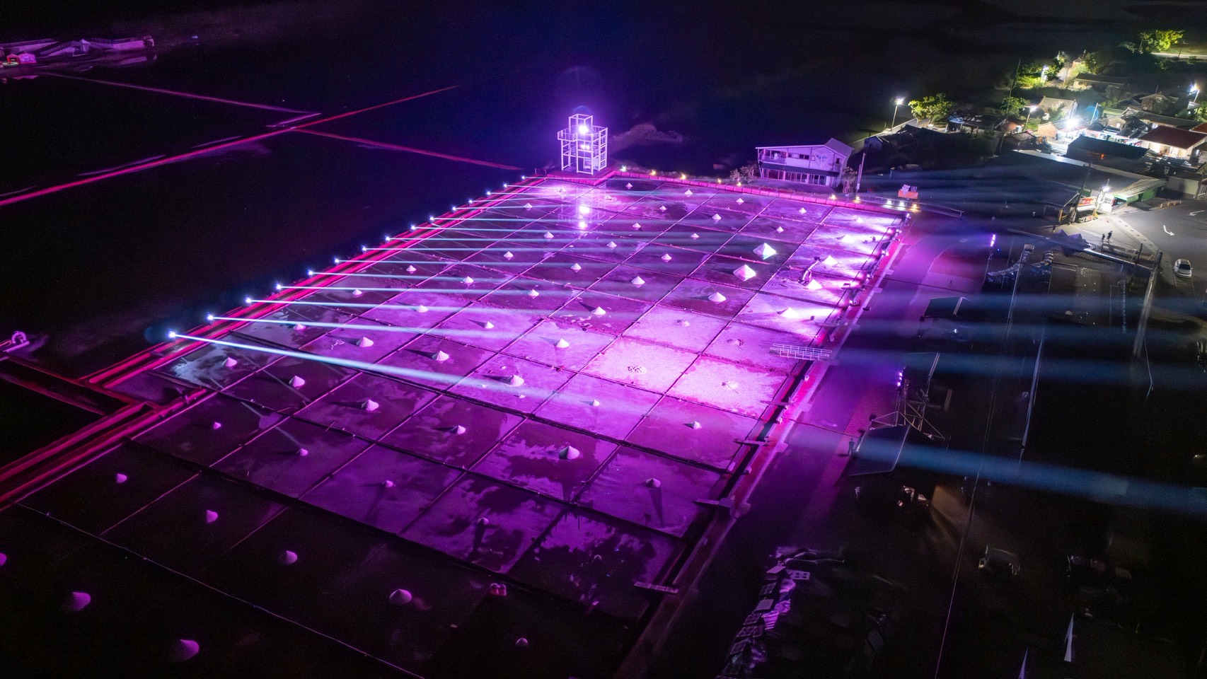 「2025一見雙雕藝術季」光雕地景藝術即將於10月18日正式開展,今(15)日晚間於臺南北門井仔腳瓦盤鹽田舉辦試燈記者會,提前揭開光影藝術的序幕。這場活動由交通部觀光署雲嘉南濱海國家風景區管理處主辦,結合在地產業、文化與觀光,為百年鹽田注入嶄新的藝術能量,也象徵著災後重建後的光榮重生。