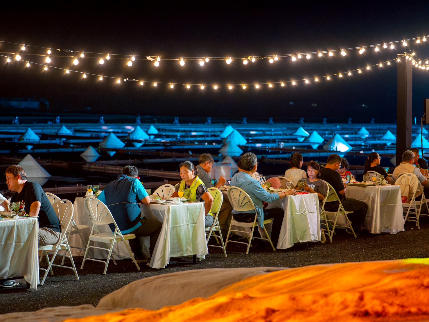 「白金餐桌體驗」為雲嘉南管理處首度於鹽田舉辦的餐宴活動,吸引立法委員、地方議員、旅遊業者及觀光協會代表共同參與。現場特別邀請曾在北門鹽場成長的鹽工姐妹王黃芙蓉與王黃玉梅出席,分享昔日於鹽田工作的點滴,重現鹽業文化的動人篇章。這場晚宴象徵鹽業世代的傳承與地方產業的永續發展,也讓旅客透過五感重新認識鹽鄉精神。