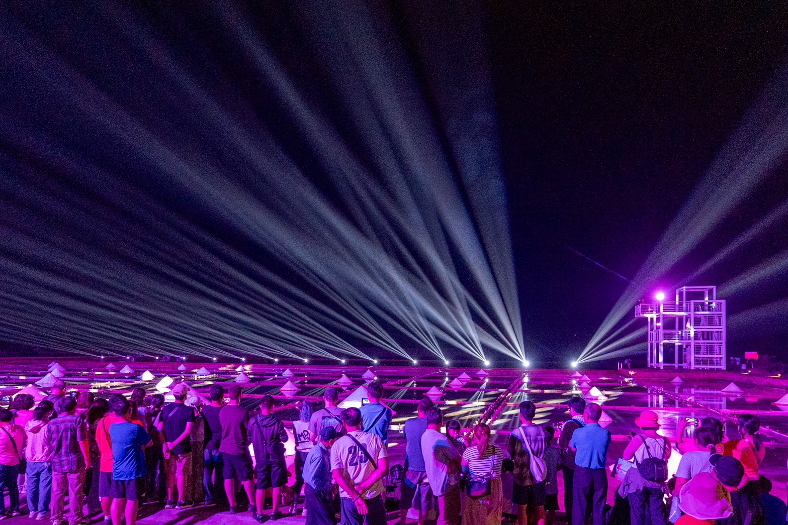 今年的「一見雙雕藝術季」以「鹽路去旅行」為主軸,串聯七股鹽山的鹽雕藝術與北門井仔腳的光雕地景