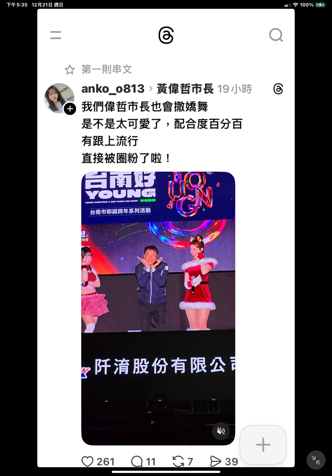 「2026台南好Young」耶誕搖滾演唱會日前圓滿落幕,不僅現場氣氛熱烈,電視與網路直播表現同樣亮眼,相關話題持續在社群平台延燒。從國際卡司演出、主持人互動橋段到暖心突發事件處理,皆讓活動獲得高度關注與好評。