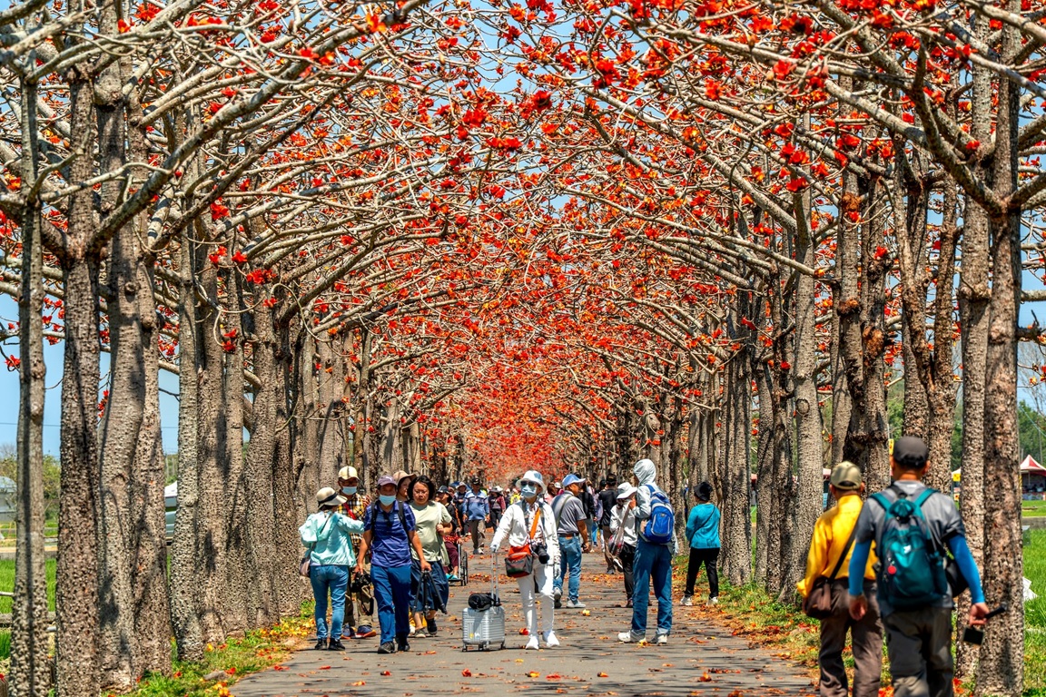 接著可前往白河區的林初埤木棉花道。這條花道曾被評選為「全球最美的10條花道」之一,沿路盛開的橙紅色木棉花在藍天襯托下格外醒目,形成壯觀的春季景觀,每年都吸引大批遊客與攝影愛好者前來朝聖。若想繼續賞花行程,可前往參加學甲蜀葵花文化節。整片挺立的蜀葵花形成壯麗花海,現場還有雞冠花、鼠尾草等多樣花卉點綴,漫步在花田步道間即可近距離欣賞百花盛開景象,也是熱門的拍照打卡景點。