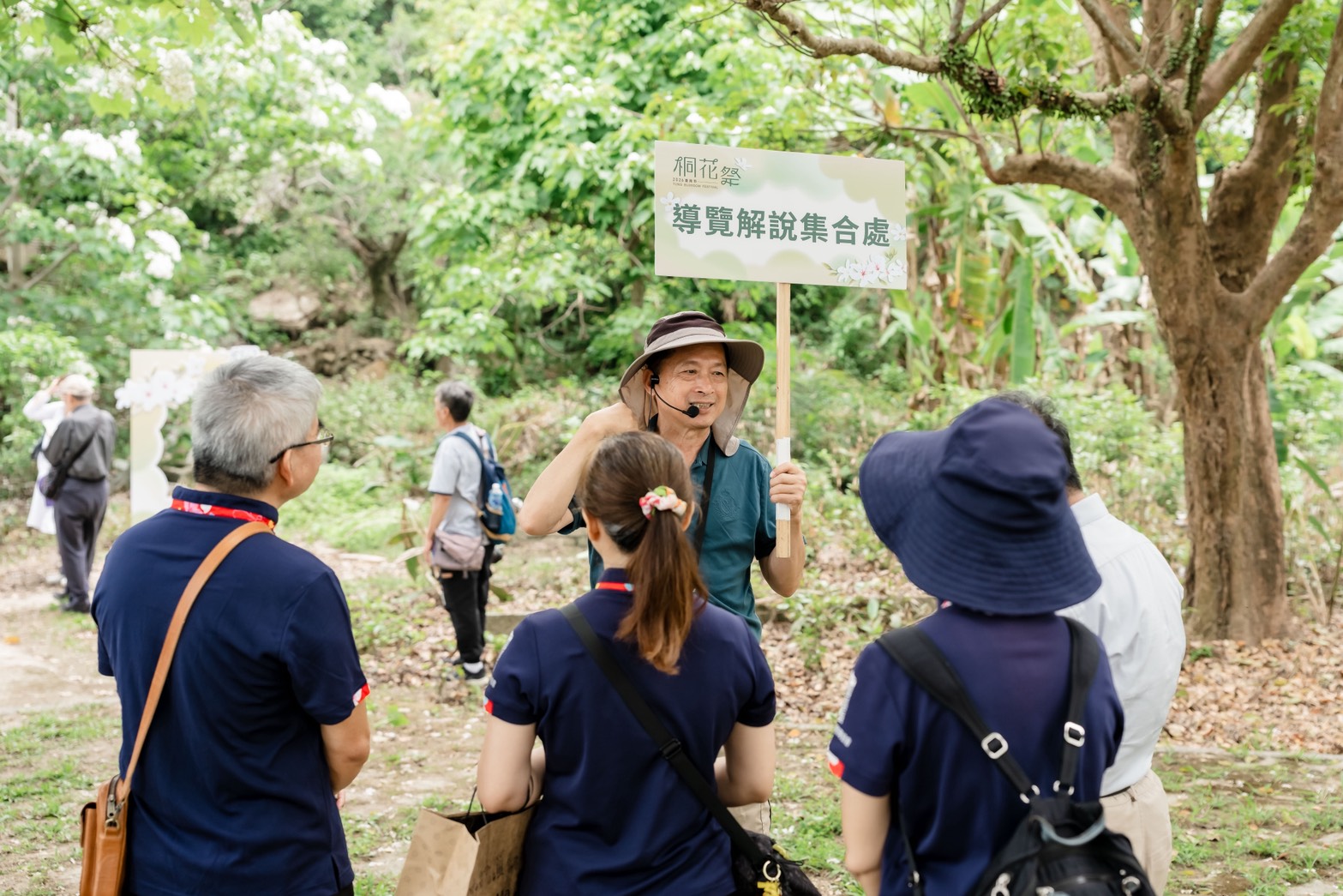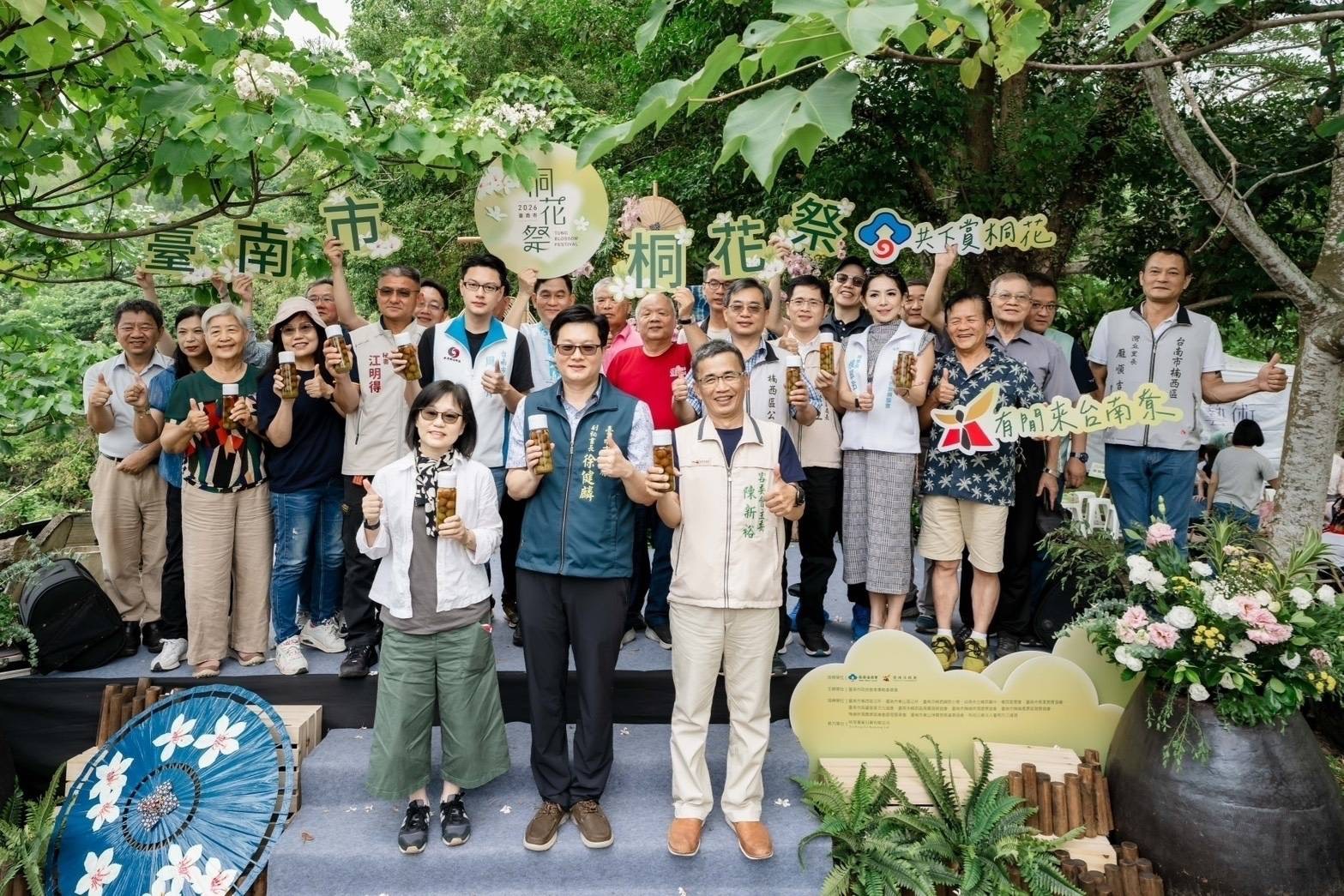 台南市政府副秘書長徐健麟代表市長黃偉哲出席時指出,台南桐花具備全台最早盛開的地理優勢,是當代客家的重要視覺象徵。特別的是,楠西梅嶺的桐花林散落在百年老梅園中,這種「青梅與白桐」共生的奇景,是全台獨一無二的風景。徐副秘書長也特別感謝客委會長期以來的支持,並鼓勵民眾在走訪客庄賞花之際,能積極參與客語認證、開口講客話,進一步延續客家文化的生命力。